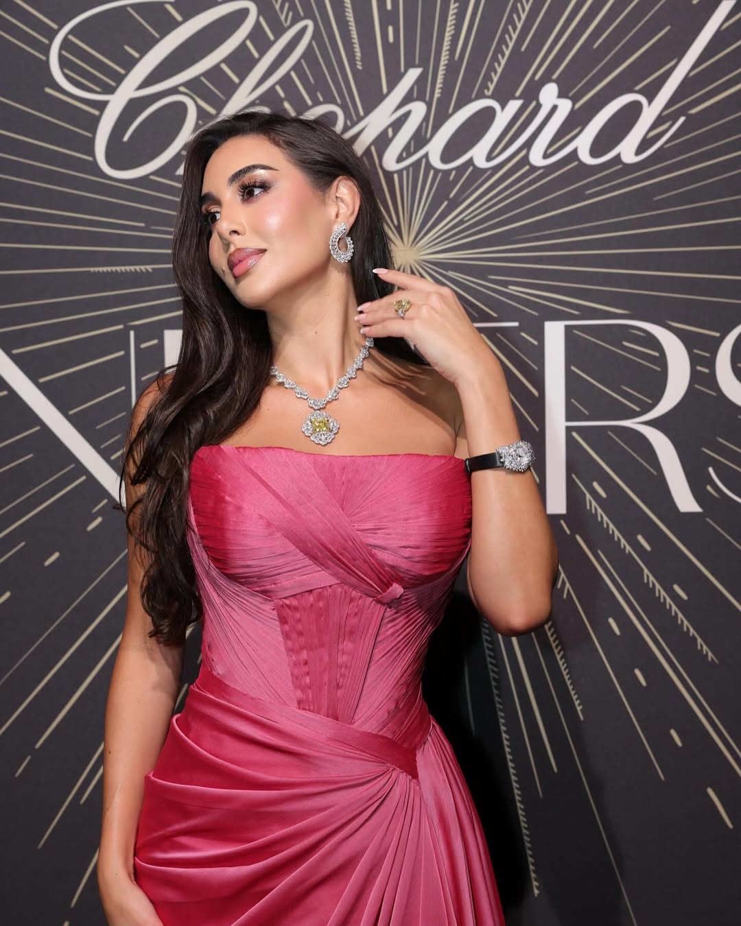 أطلّت ياسمين صبري في حفل العشاء الساهر الذي أقامته مجوهرات Chopard على هامش مهرجان "كان السينمائي" 2025، بفستان مبهر باللون الوردي، وتزيّنت بمجوهرات من الدار السويسرية الفاخرة عبارة عن قلادة ماسية مذهلة لناحية التصميم مع حجر كبير الحجم من الألماس الأصفر ونسّقت معه أقراطاً من الذهب الأبيض المرصّع بالألماس (White Fairmined Gold Set with Marquise Cut Diamonds) من مجموعة (Green Carpet).
