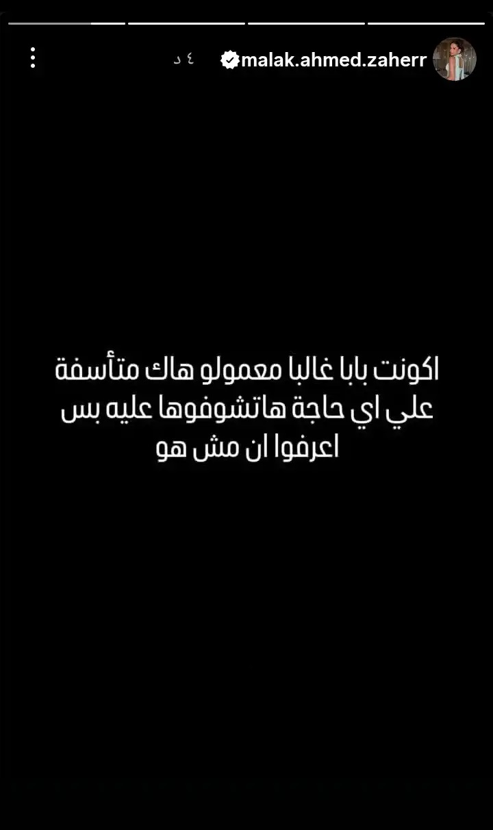 وكتبت ملك قائلةً: "أكونت بابا غالباً معمول له هاك، متأسفة على أي حاجة هتشوفوها عليه، بس اعرفوا إن مش هو".