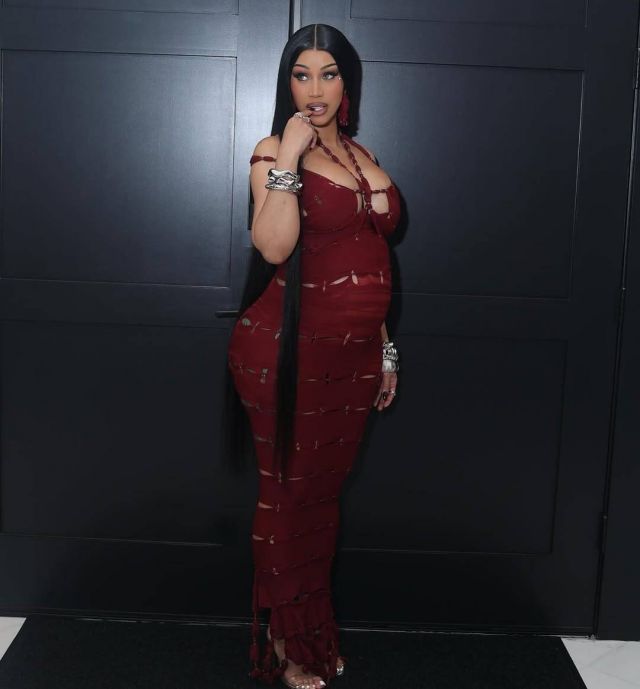 اختارت المغنّية كاردي بي للاحتفال بعيد ميلادها الثالث والثلاثين فستاناً ضيّقاً يبرز حملها بطفلها الرابع وبتصميم بسيط ومكشوف.