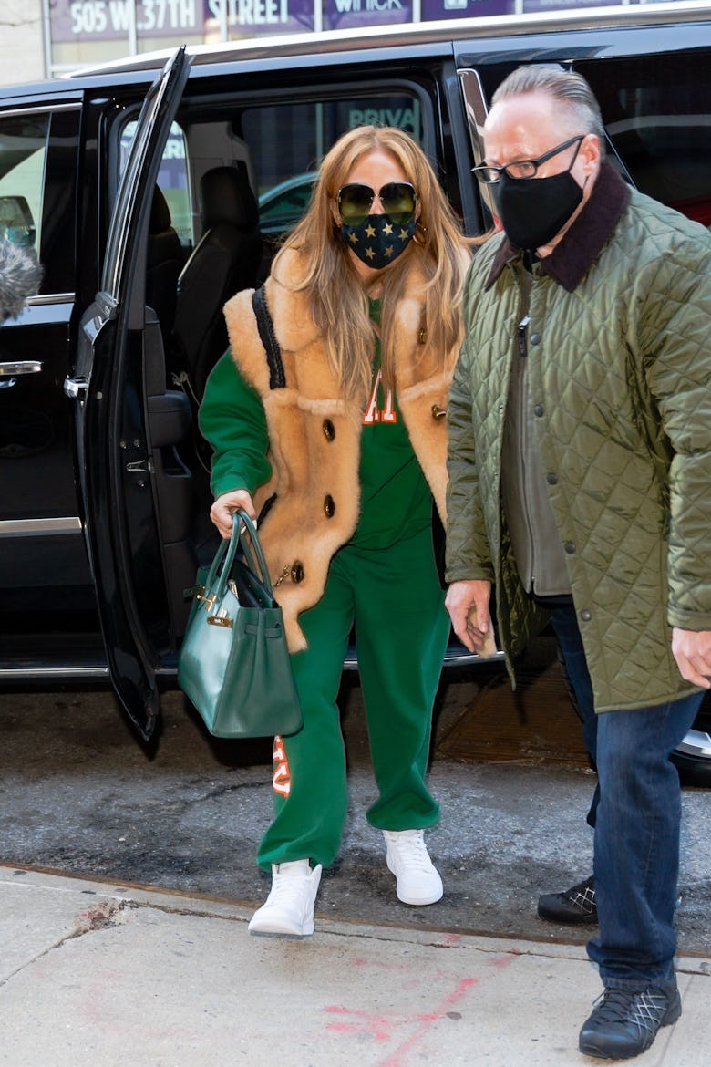 وظهرت النجمة العالمية عام 2020، عندما كانت تواعد أليكس رودريغيز، وهي تحمل حقيبة "بيركين" بحجم كبير وباللون الأخضر الفخم والتي يتخطّى سعرها الـ200 ألف دولار، واللافت أنها حملتها مع بدلة رياضية بسيطة باللون الأخضر.
