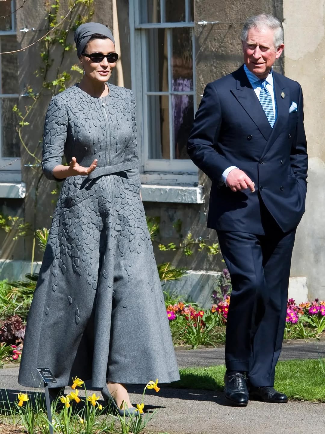 نسّقت الشيخة موزة إطلالتها مع توربان داكن اللون، أسلوب أصبح جزءاً من توقيعها البصري، وقد اختارته هنا بلون يكمّل دفء الكاميل، ليخلق تبايناً مدروساً من دون أن يخلّ بتوازن الإطلالة.