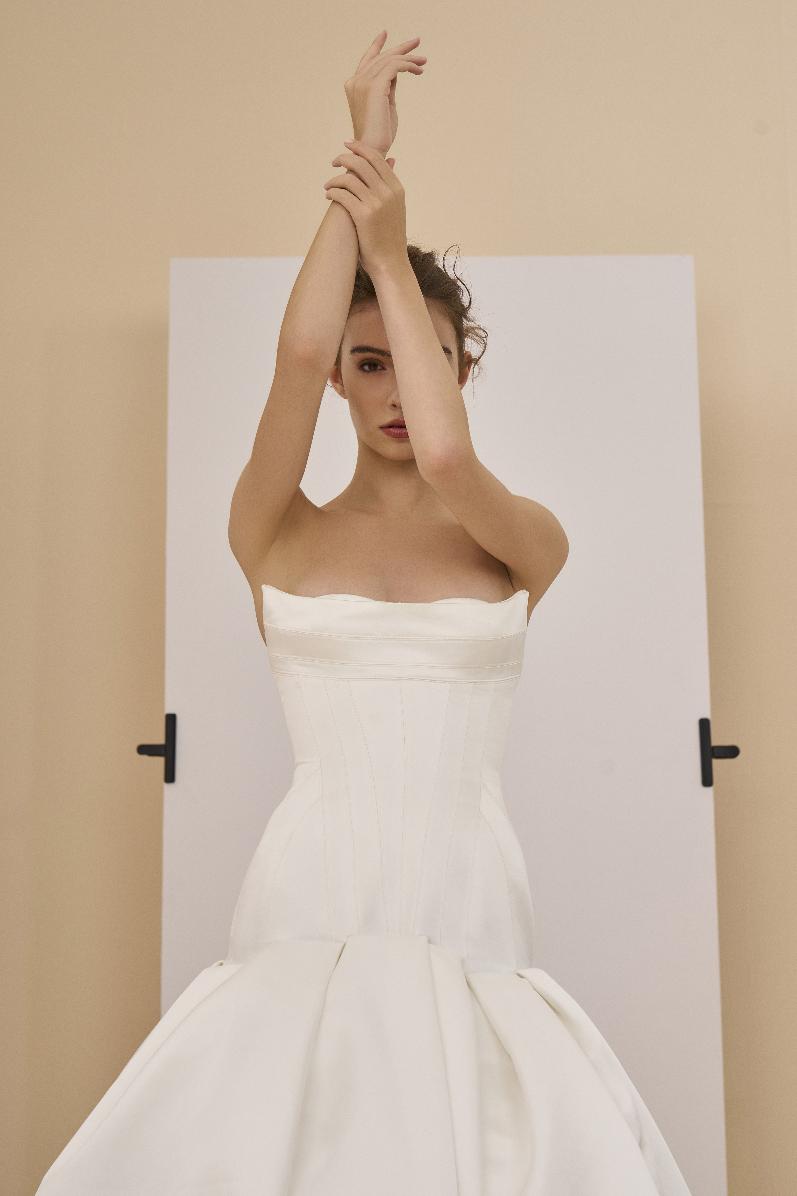 تستلهم مجموعة "وايت 8" من رحلة العروس العاطفية، بحيث تُركز بشدة على الحِرفية وتقنيات الأزياء الراقية. تُبرز المجموعة تنوّع الأقمشة، والتفاصيل المطرّزة يدوياً، والتركيب الدقيق، مستمدةً مباشرةً من خبرة الدار في مجال الأزياء الراقية. ومن السّمات المميزة لهذا الموسم، عودة الكورسيه المُعاد تصميمه بدقة عصرية لتعزيز البنية والملاءمة والشكل.