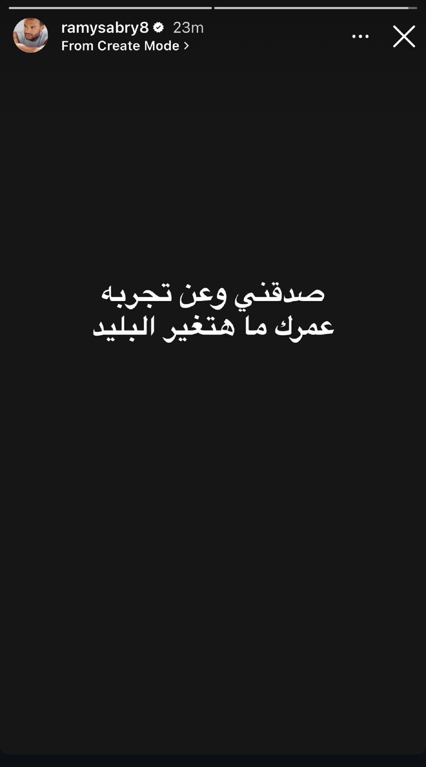وكتب رامي عبر خاصية القصص المصورة الملحقة على حسابه الشخصي بـ"إنستغرام، قائلاً: "صدقني وعن تجربة عمرك ما هتغير البليد".