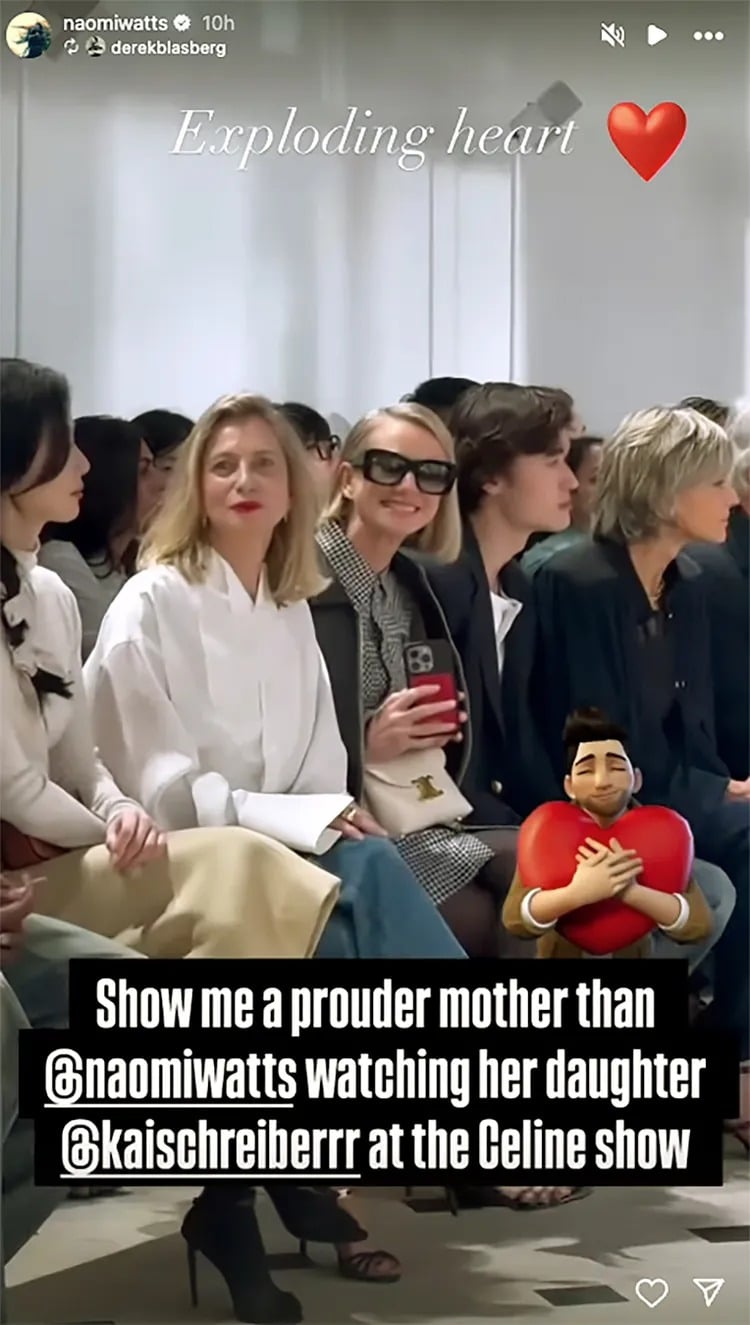 وعلّق على الفيديو قائلاً: "أريد أمّاً فخورة مثل نعومي واتس وهي تشاهد ابنتها كاي شرايبر في عرض سيلين".