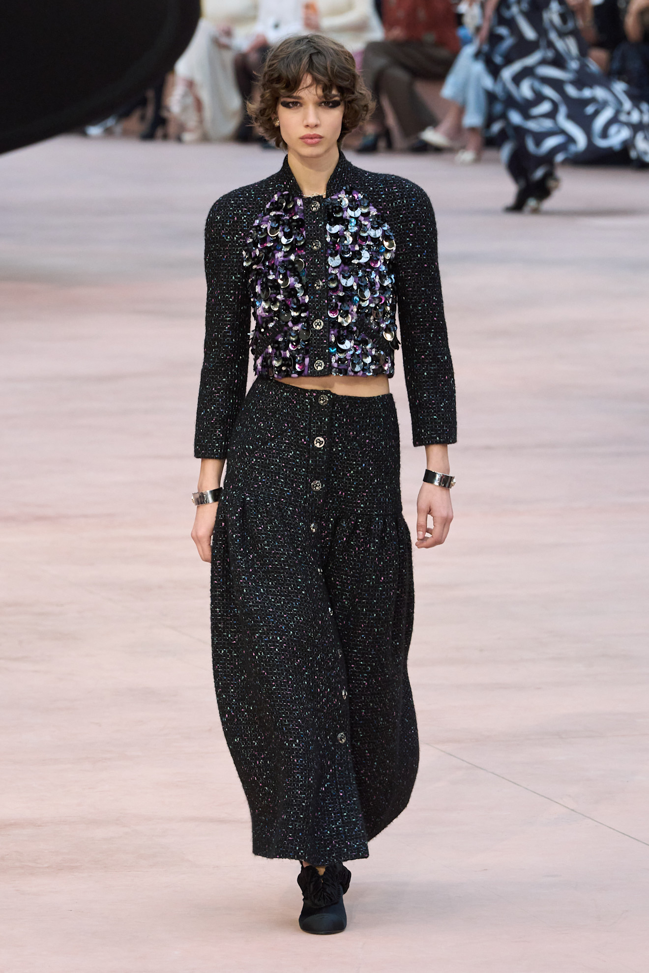 • شانيل قدّمتها بأسلوب التويد الكلاسيكي مع لمسات لامعة تناسب الأجواء الباردة.