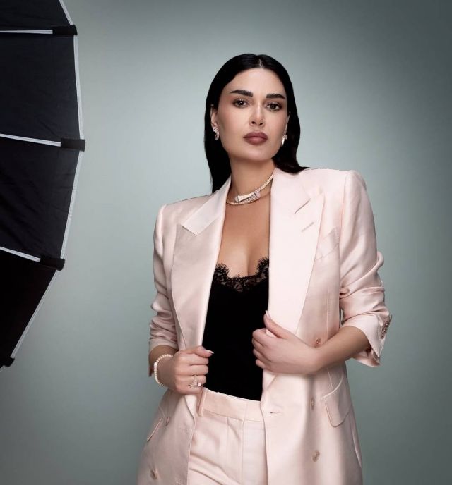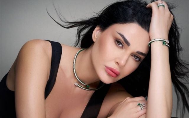 تألقت النجمة سيرين عبد النور بمجموعة cleo المميزة من Marli، ونسقت ملابسها السوداء مع التصميم المبتكر الذي يجمع بين الفخامة والعصرية والمرصع بالماس وباحجار الزمرد الخضراء المبهرة.