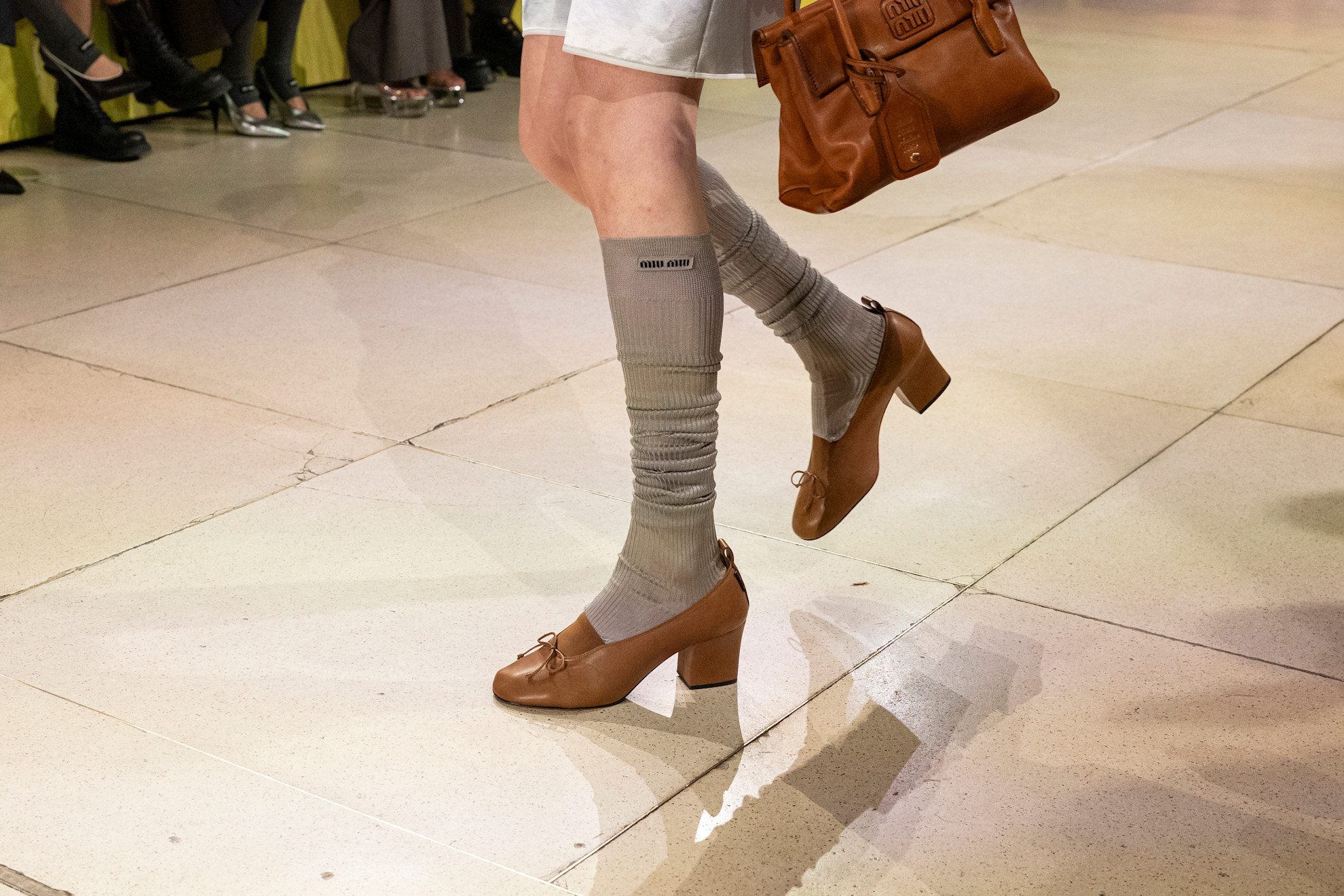 استعادت دار "ميو ميو" Miu Miu روح السبعينيات من خلال أحذية الريترو الكلاسيكية ذات الكعوب المتوسطة والمقدّمة المستديرة. تصميم يجمع بين الحنين إلى الماضي وسحر الأناقة الباريسية الخفيفة. هذه الأحذية خيار مثالي للإطلالات المكتبية أو النهارية، وتضفي لمسة "فينتج" أنيقة على أي لوك.