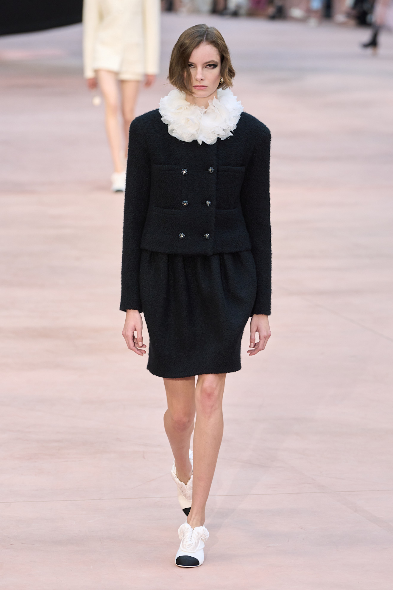 ولم تقتصر المجموعة على التويد فقط، بل تميزت أيضاً بـسترات أنيقة وبناطيل عملية صُمّمت لتمنح حرية الحركة، إضافة إلى فساتين مستقيمة تعكس التوازن المثالي بين الأنوثة والبساطة. النتيجة كانت مجموعة تتحدث لغة العملية الراقية، حيث لا حاجة للاختيار بين الراحة والأناقة، لأن شانيل تجمعهما معاً بمهارة لا تُضاهى.