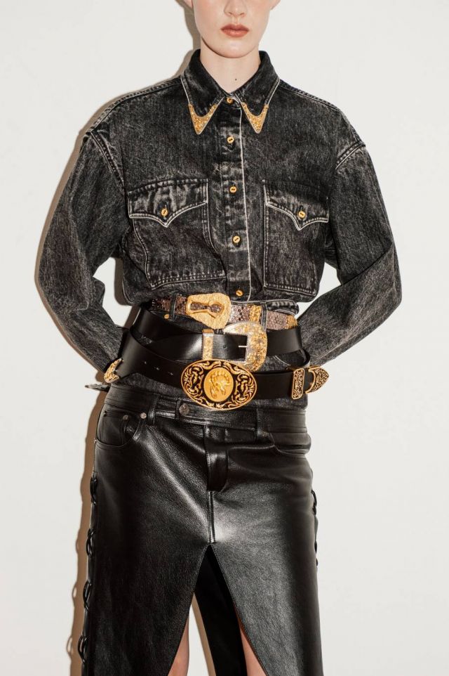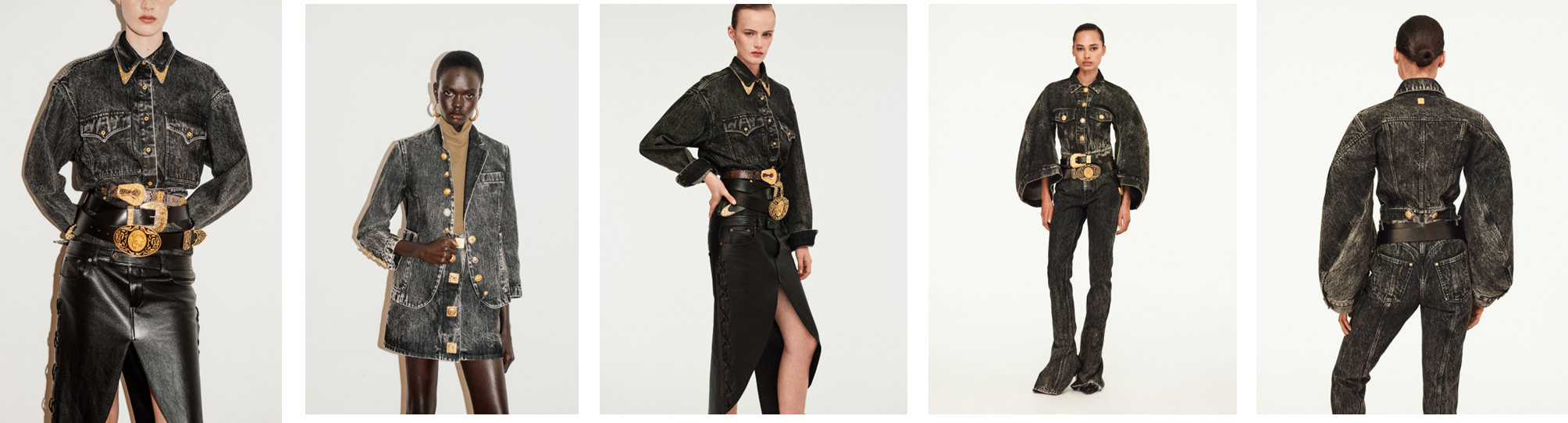 مصنوعٌ من قماش أسود داكن ومُصمّم بدقةٍ متناهية، يظهر على شكل سترات قصيرة، وبنطلونات بقصة واسعة من الأسفل، وتنانير قصيرة، وفساتين قمصان... كل قطعةٍ منها مُشبعةٌ بالروح التكساسية الجريئة والذوق الباريسي الرفيع.
