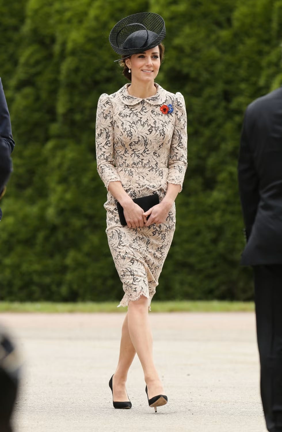 لا يمكن الحديث عن الدانتيل من دون ذكر كيت ميدلتون، أميرة ويلز، التي أعادت إلى الأذهان صورة الأناقة البريطانية الكلاسيكية بلمسة عصرية. منذ فستان زفافها الأيقوني الذي صُمّم من الدانتيل الفرنسي الراقي، ارتبط اسم كيت بهذا القماش الذي أصبح جزءاً من هويتها الأسلوبية.