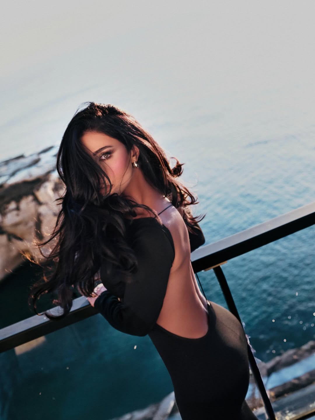اختارت النجمة اللبنانية سيرين عبد النور تصميماً أنثوياً أنيقاً من توقيع Gaelle Paris، باللون الأسود المصنوع من قماش الساتان الفاخر. الإطلالة تألفت من قميص ناعم بأكمام طويلة وتنورة منسابة ذات فُتحة وسطية أضفت لمسة جريئة ومفعمة بالأنوثة.
