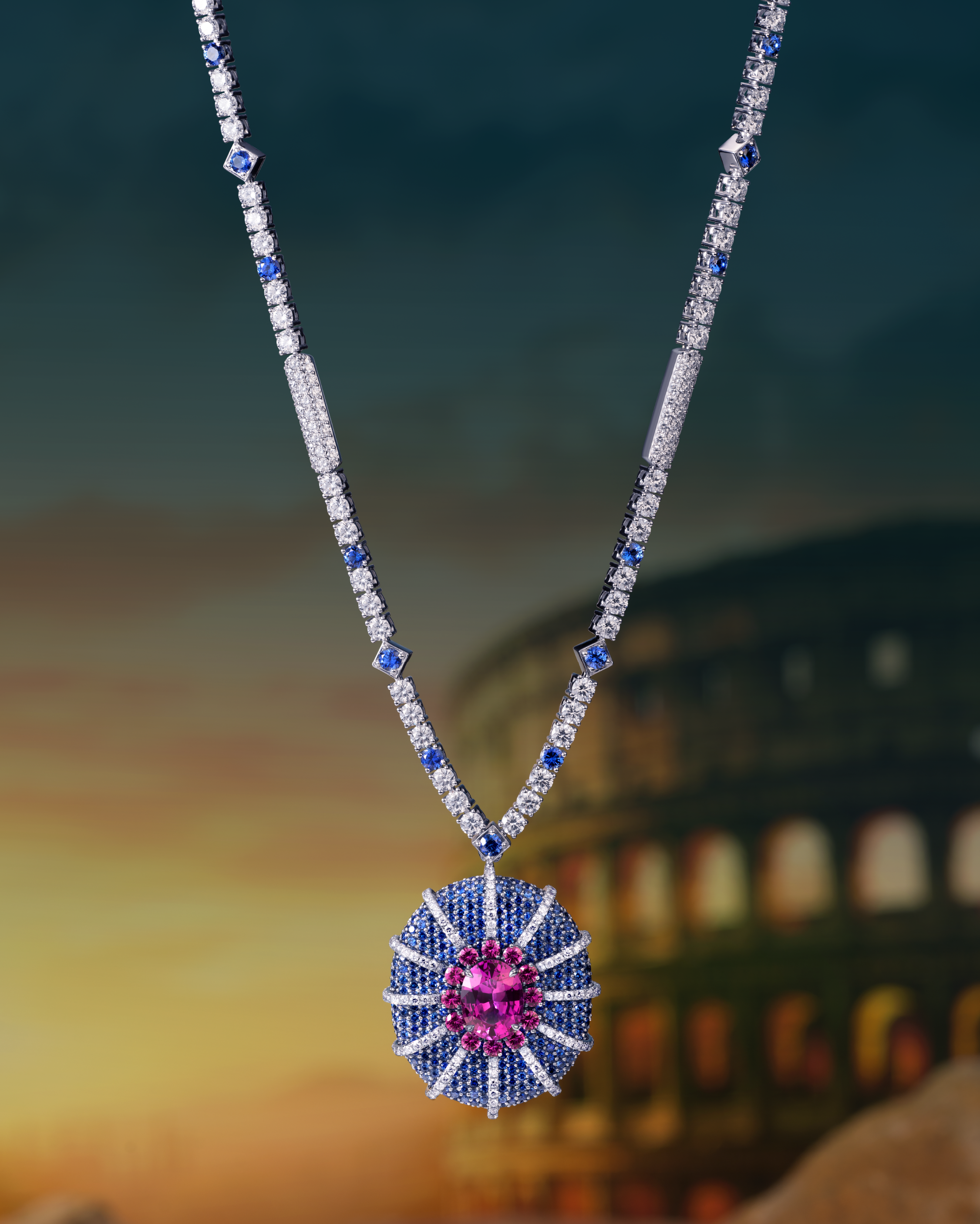 تتألّف مجموعة Illuminated Wonders من سبعة أطقم متكاملة، يضمّ كل طقم قلادة وسوارًا وأقراطًا وخاتمًا بتصميم متناغم. وتُشكّل هذه المجموعة تحية فنيّة للمواقع الأسطورية حول العالم، من خلال تصاميم أخّاذة وأحجار كريمة استثنائية تجسّد روعة كل معلم وإرثه الثقافي: