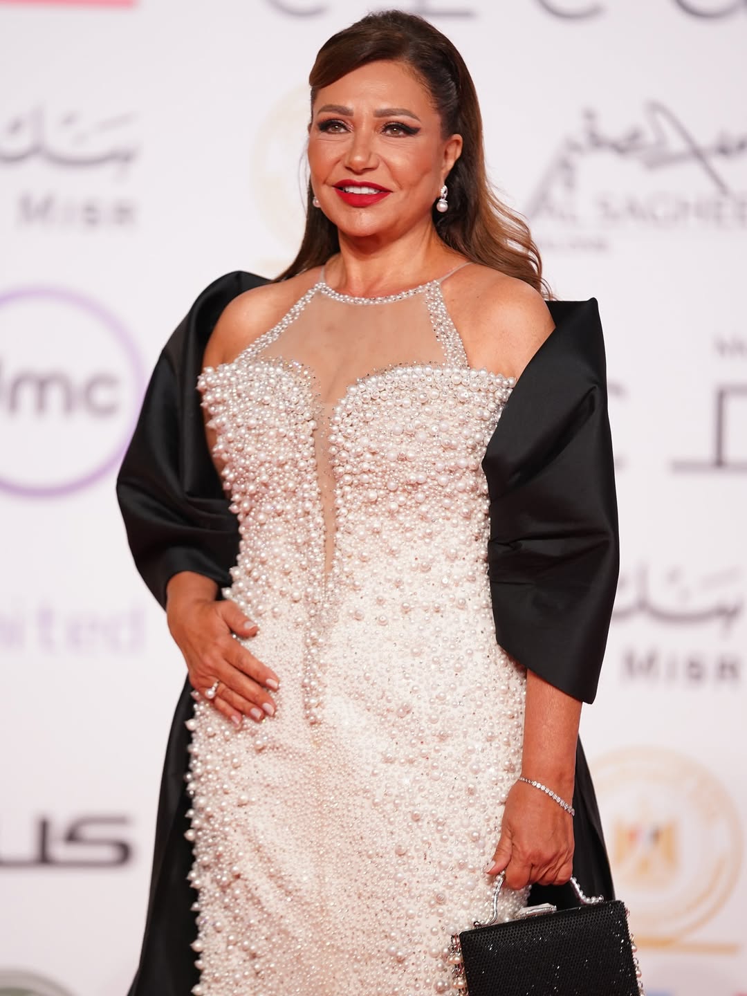 تألقت النجمة يسرا بفستانٍ أسود مرصّع بالخرز اللامع، يجمع بين الرقي والأنوثة. القصّة الضيّقة عند الخصر والأكمام الشفّافة منحته طابعاً أنيقاً متجدّداً، فيما جاء مكياجها الناعم وتسريحة شعرها المنسدل بتموّجاتٍ عريضة ليؤكدا أن الكلاسيكية لا تخرج من دائرة الأناقة أبداً.