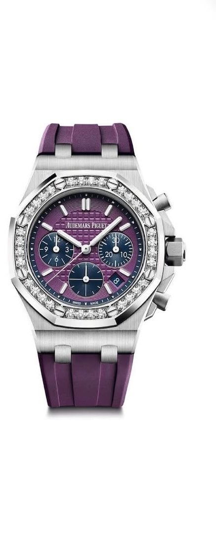 تُعرف دينا الشربيني بخياراتها الجريئة وبأسلوبها الذي يميل إلى العصرية البعيدة عن النمطية. وقد جاء اختيارها لساعة Royal Oak Offshore ليعكس ذوقها المتجدّد. الساعة بقياس 37 مم وبحركة ذاتية التعبئة، تتميز بهيكل مصنوع من الستانلس ستيل، ما يمنحها طابعاً عملياً وقوياً، بينما يكتمل الترف في إطار مرصّع بالألماس. وتبرز لمسة التفرّد في المينا البنفسجي الذي يعدّ من الألوان النادرة في عالم الساعات، والممزوج بعلامات ساعة من الذهب الأبيض مع طلاء مضيء يمنح القراءة سهولة وأناقة. أما السوار المطاطي باللون البنفسجي فيضفي على الساعة روحاً رياضية نابضة بالحياة. تعمل الساعة باحتياطي طاقة يبلغ 40 ساعة، ما يجعلها مثالاً للأناقة العملية.