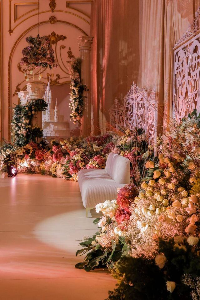 على مدى أشهر من التحضير، عمل فريق آدم عفارة على تنفيذ رؤية بصريّة شاملة، حملت توقيعه الإبداعي المعروف عالمياً، مع ديكورات خاصة وصلت من ستّ دول، وأكثر من 40 ألف وردة طبيعية زيّنت السقف والقاعة بالكامل، فحوّلت المكان إلى ما يشبه حديقة سماوية معلّقة تغمرها الأضواء والورود من كل جانب.