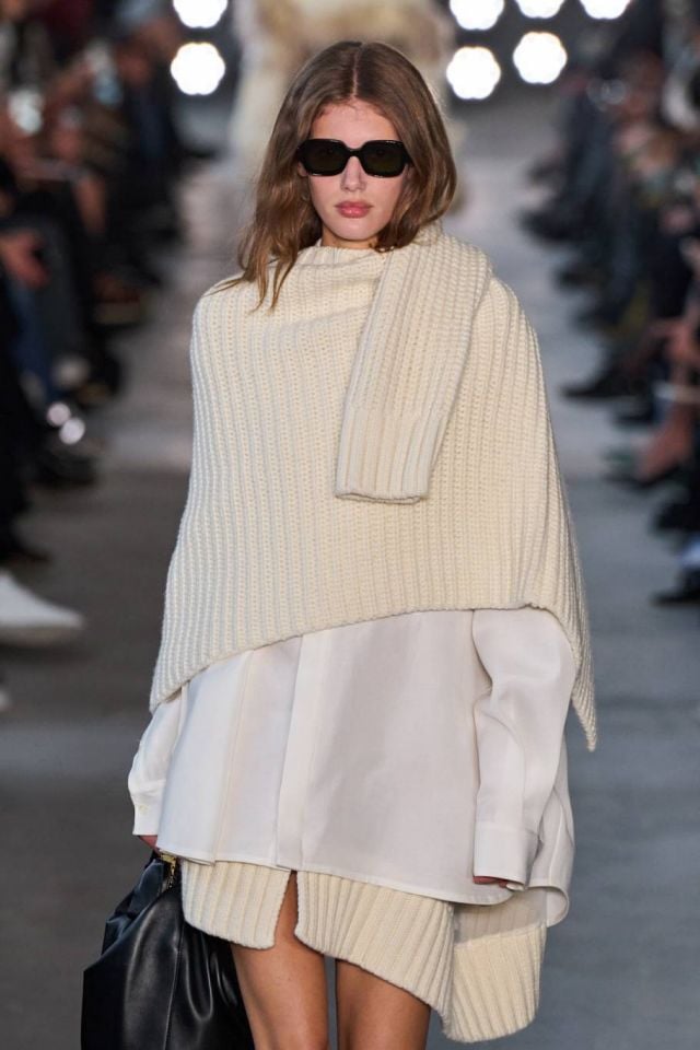 القميص الأبيض الواسع يناسب الإطلالات العملية اليومية. يكفي أن تضعيه داخل الجينز عالي الخصر مع حذاء طويل أو بوت مسطّح.