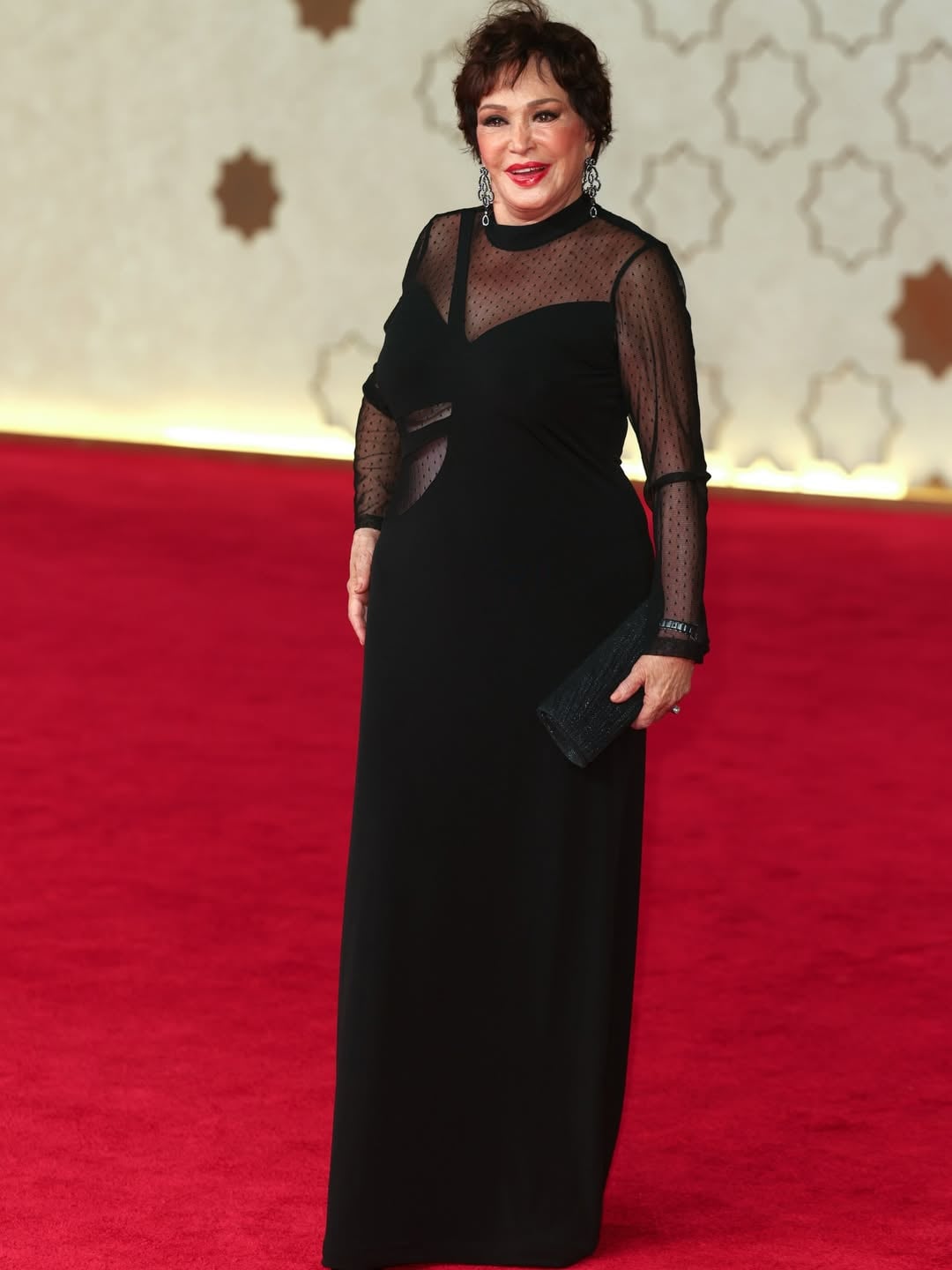 أطلّت النجمة لبلبة بفستان أسود أنيق بتصميم ناعم يناسب سنّها ومكانتها الفنية، وجاء بقصّة مجسّمة بالكامل تبرز رشافتها وأناقتها، وأُضيفت إليه حركة الشيفون المطبّع بالدوائر عند الأكمام والرقبة وفي جزء من الخصر، في إطلالة أنيقة وناعمة نسّقتها بحقيبة "كلاتش" سوداء ومجوهرات ناعمة، أضافت رونقاً جميلاً الى طلّتها النهائية.