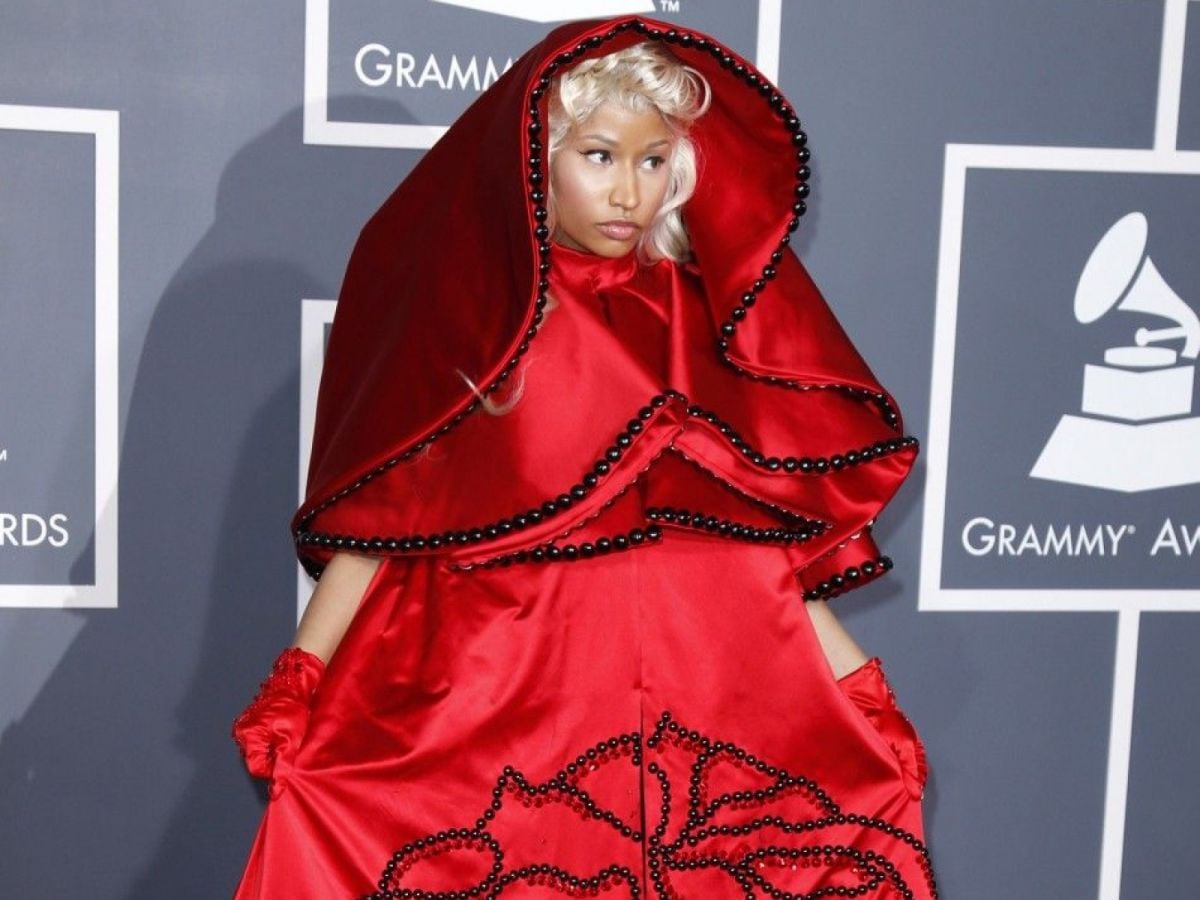 أثارت مغنّية الراب نيكي ميناج جدلاً واسعاً على الإنترنت بفستانها الأحمر القرمزي المصنوع من الساتان الحريري من تصميم فيرساتشي. تميزت إطلالتها الجريئة بغطاء رأس ضخم مُزيّن بتطريزات سوداء على الحواف، كما طُبقت هذه التطريزات على التنورة لرسم صورة رأس ميدوسا، رمز العلامة التجارية.