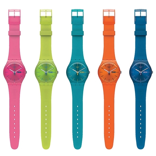 لا شك في أنك اقتنيت واحدة من الساعات الملونة الرائجة كثيراً في الآونة الأخيرة. يمكنك تزيين معصمك بهذه الساعة حتى أثناء السباحة إذا كانت مقاومة للماء، خصوصاً وأن سوارها مصنوع من السيليكون، ما يجعله قوياً جداً. اختاري الألوان الساطعة والوامضة التي تلفت الأنظار إليك. واللافت أنه يمكنك تزيين معصمك بالساعة نفسها عند الذهاب إلى الحفلة مساء.