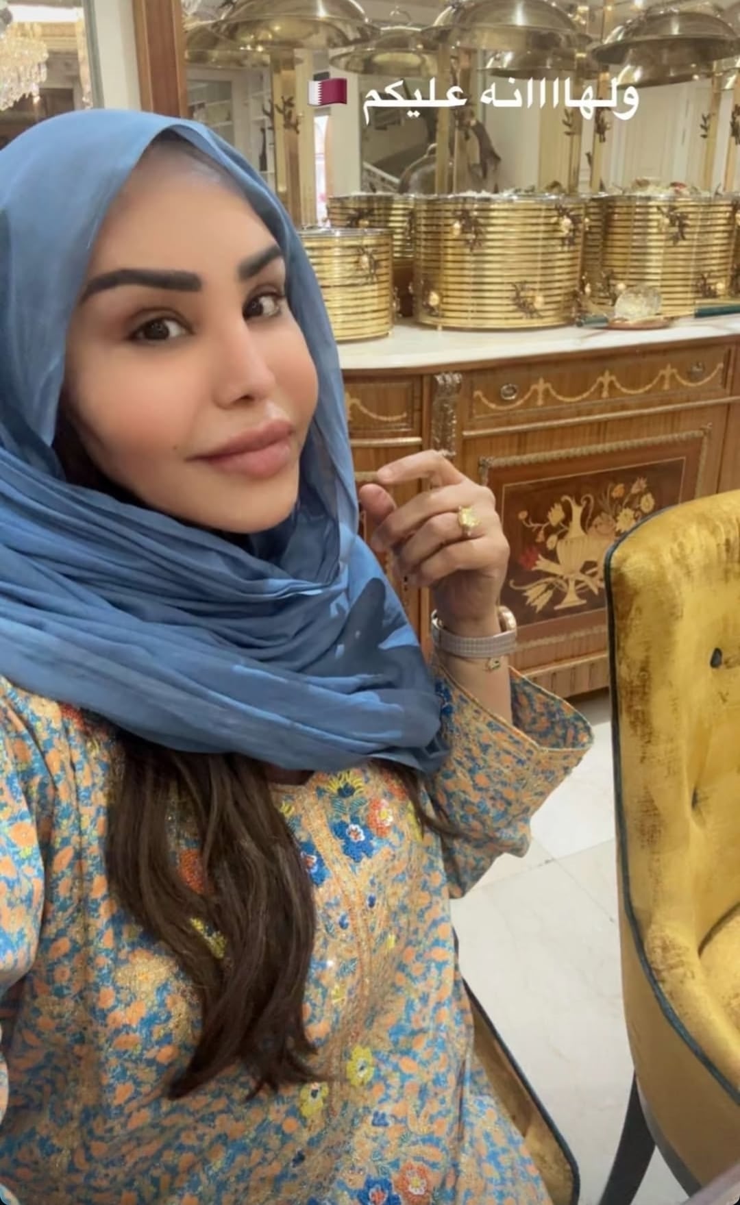 كذلك مشت النجمة الخليجية بارتياح في شوارع الدوحة بالعباءة السوداء وتنقلت في أسواقها التجارية، ومرت على محال المجوهرات، واختارت مجموعة جديدة من التصاميم المبهرة، وحرصت على استعراضها واستعراض الضيافة وحُسن استقبالها، وبدت في غاية السعادة.