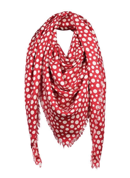 وشاح المدينة والسفر Live Large: وشاح حسي بخفة الريش يتحرك مع من يرتديه. لا قواعد بشأن ارتدائه. هو أفضل صديق تلتف به في المدينة أو السفر. الإطار الأمثل للعبة لا تنتهي من الأحجام والنَسج والطباعة والألوان. إصدار سخي من الكشمير والحرير ووعد بالنعومة التي تتناقض مع توليفات الرسوم الأصلية وتتحول عن الرموز الراسخة (نقاط البولكا ونقش الفهد) لتقدم لفتة جميلة تتراوح بين اللمسات النهائية المنتسلة Frayed والمجعدة والكامدة واللماعة. مزيج مستعار من ثقافة الشارع.