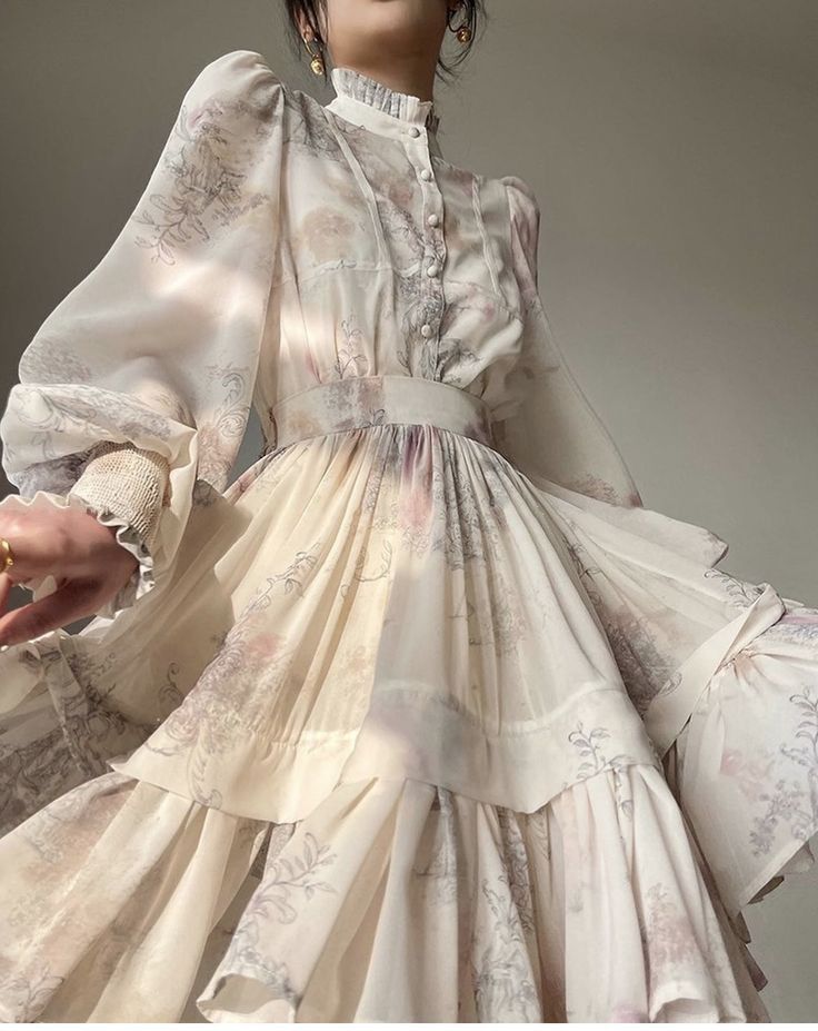 للحصول على إطلالة مميزة، اختاري فستاناً بأكمامٍ منفوخة وياقة عالية. ولتكوني مميزة، اختاري طبعات الزهور الفاتحة ولا تهملي التفاصيل الصغيرة عند منطقة الصدر.