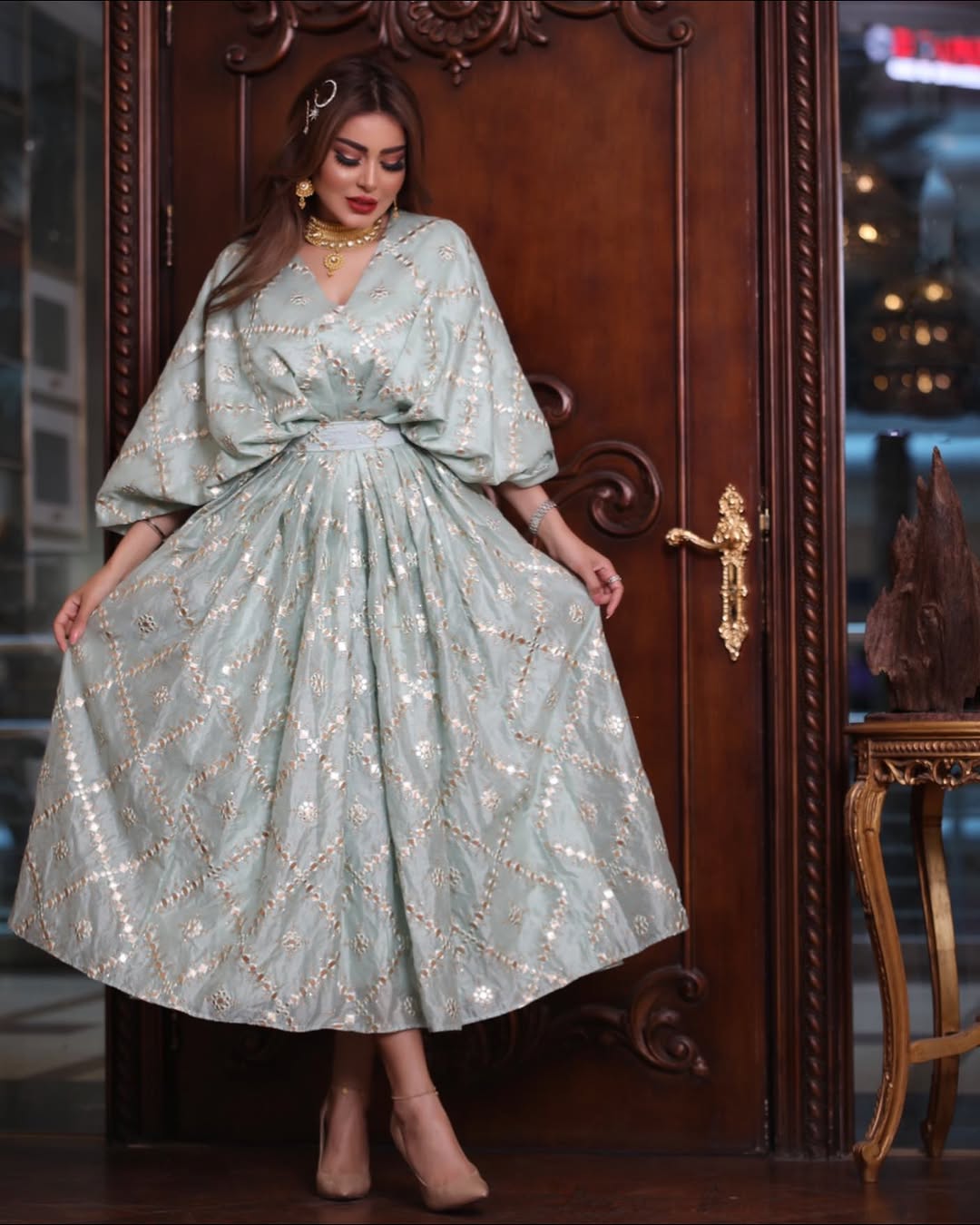ماذا عن المجوهرات؟ إحدى قواعد تنسيقات العيد الأساسية هي: إذا كانت ملابسكِ مطرّزة بكثافة، عليك الاكتفاء بأقراط ناعمة، فالبساطة هي السرّ لإطلالة فخمة وراقية.
