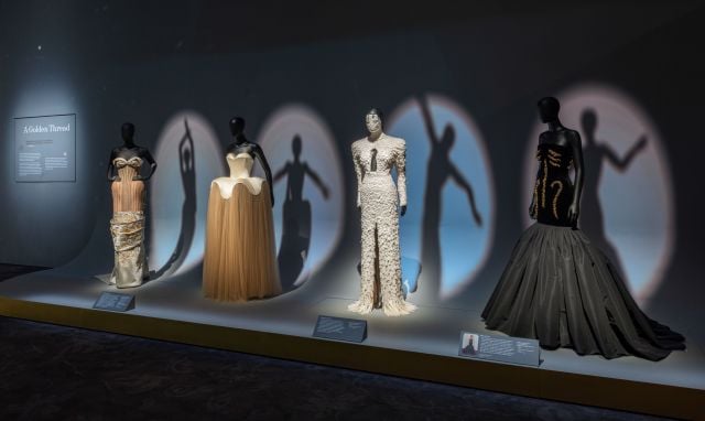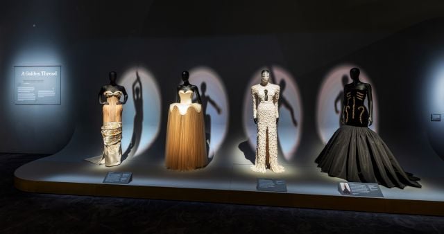 سكياباريللي: حين تتجلّى الموضة لتصبح فناً (Schiaparelli: Fashion Becomes Art) يضمّ أكثر من 400 قطعة، تشمل 100 إطلالة و50 عملًا فنيًا، إلى جانب الإكسسوارات، المجوهرات، اللوحات، الصور، قطع الأثاث، العطور، والمواد الأرشيفية. من أبرز المعروضات: فستان «الهيكل العظمي» لعام 1938 — النسخة الوحيدة المعروفة الباقية حتى اليوم (وهو جزء من المجموعة الدائمة لمتحف فيكتوريا وألبرت) — إلى جانب فستان «الدموع» من العام نفسه، بالإضافة إلى القبعة الأيقونية التي تستحضر شكل حذاء مقلوب؛ وجميعها جاءت ثمرة تعاونها مع الفنان سلفادور دالي. كما يضم المعرض أعمالًا لفنانين كبار، من بينهم بابلو بيكاسو، جان كوكتو، مان راي، وإيلين آغار، فضلًا عن عدد من تصاميم سكياباريللي المخصّصة لعالمَي المسرح والسينما. يُختتم المعرض بلمسة معاصرة آسرة، تتجلّى فيها إبداعات دانيال روزبيري — التي تألّقت بها نجمات عالميات مثل أريانا غراندي ودوا ليبا — في خاتمة درامية تشكل حوارًا بصريًا متقنًا بين إرث الدار ورؤيتها الراهنة.