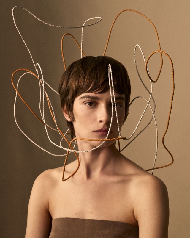 تُطوى شرائط الجلد على نفسها مع تثبيت غير مرئي لإخفاء الحواف، ثم تُنسج حول نواة داخلية تمنح الهيكلية والاستمرارية للنمط المضفّر، قبل أن تُثبَّت بدقة متناهية على يد حِرفيين مهرة.