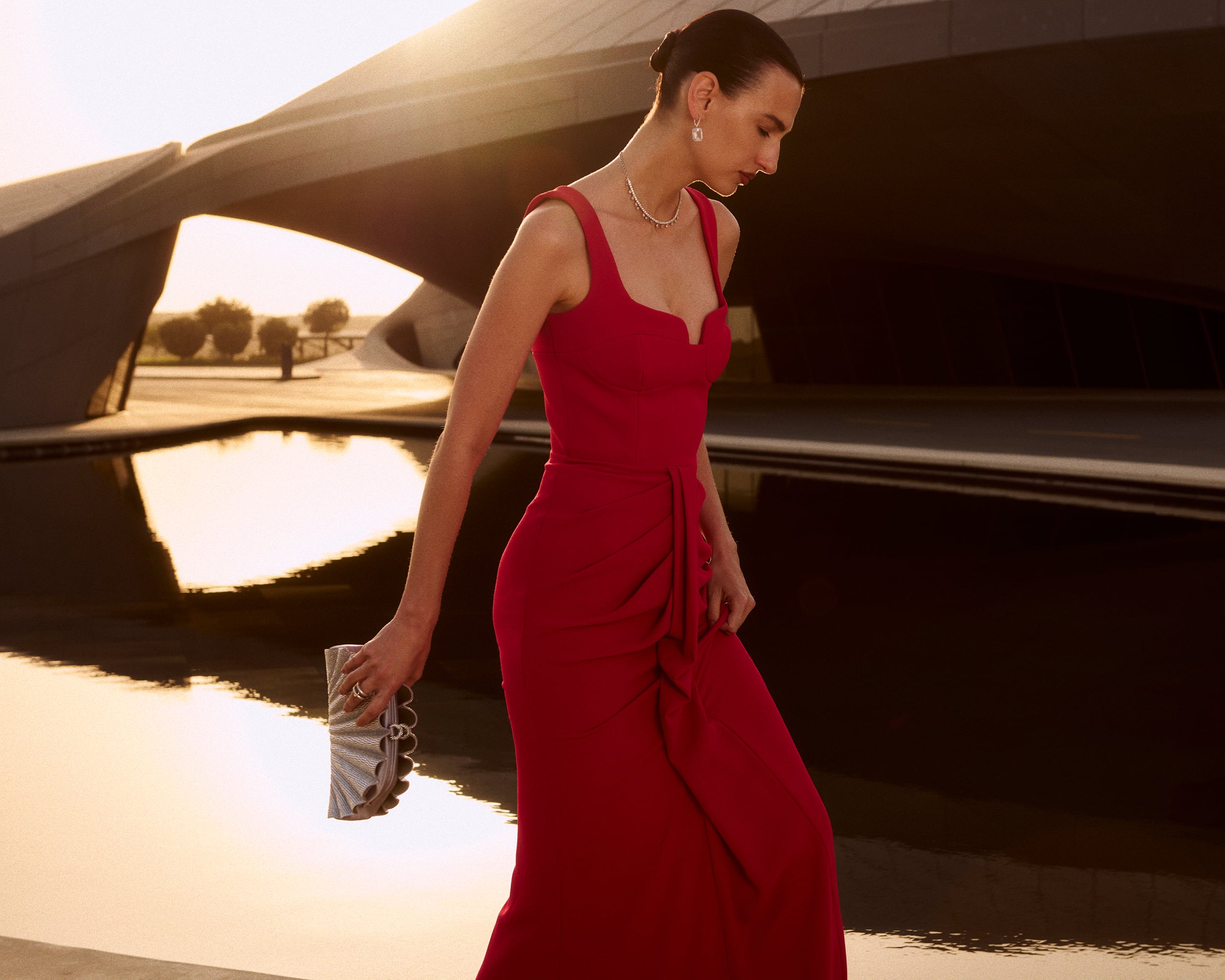 فساتين نحتية وقصّات ضيّقة تتصدر المشهد، مع ألوان زاهية ومجوهرات لافتة تخلق تباينًا وتمنح الإطلالة إحساسًا قويًا بالشكل والحضور.