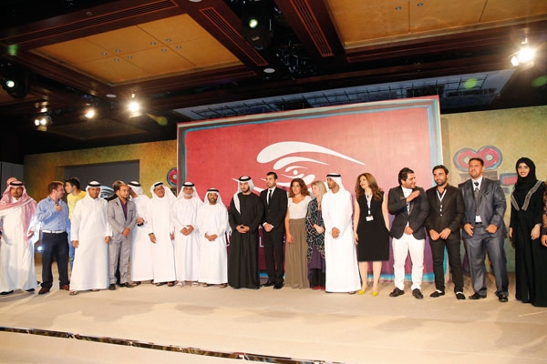 صورة جماعية للشيخ ماجد والفائزين بجوائز المهرجان