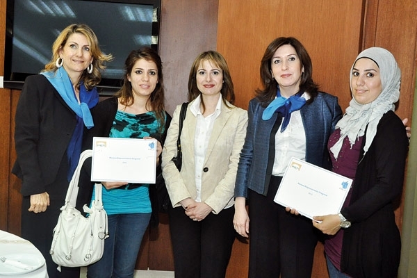 قامت الدكتورة لينه الزعيم الددا رئيسة جمعية أجيالنا والسيدة أرابيلا بحصلي مديرة برنامج «مبادرة الشراكة الشرق أوسطية» بتسليم الشهادات للسيّدات اللواتي شاركن في البرنامج، بحضور اللجنة التنفيذية لـ«برنامج تمكين المرأة» من جمعية أجيالنا، وممثلين عن المراكز التدريبية المشاركة في البرنامج: مؤسسة مخزومي، أكاديمية الضيافة الدولية، شركة فورماتيك وعدد من الحضور.