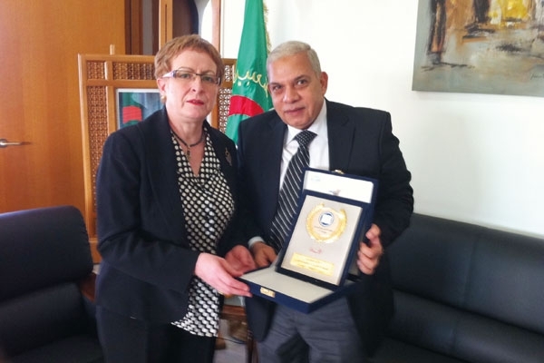 وخلال الزيارة حصل على وعد من وزيرة الثقافة الجزائرية خليدة تويمي بأن تزور مصر في أقرب فرصة. ومن جانبه قام رئيس اتحاد الناشرين المصريين محمد رشاد، بإهداء درع الاتحاد إلى خليدة تويمي، على هامش مشاركته في المهرجان الدولي الثقافي للأدب والكُتَّاب الشباب الذي أقيم أخيراً في الجزائر، وذلك في حضور محافظ الصالون الدولي للكتاب في الجزائر إسماعيل أميزيان ، ومحافظ المهرجان عز الدين قرفي.