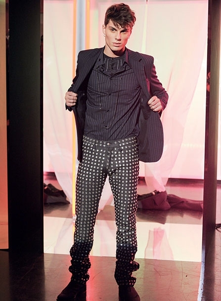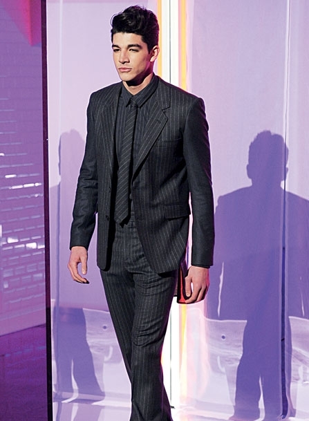 المجموعة ضمّت الألوان الكلاسيكيّة مثل الأسود والرمادي مع نقوش صغيرة من الأحمر. كما رأينا الأقمشة الفضيّة اللماعة والسترات القصيرة فوق القمصان.