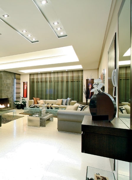 هذه الشقة الممتدة على مساحة 260 متراً مربعاً، مؤلّفة من طبقتين، بحيث أنّ الطبقة الأولى تضمّ قاعات الإستقبال وغرف النوم وغرفة الجلوس أيضاً.