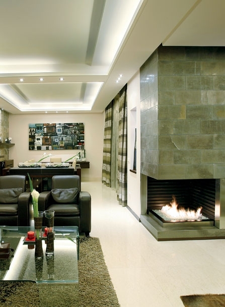 مكان الموقدة الكهربائية استراتيجي، بحيث وضعت على الجدار في وسط الصالونات، بالحجر المعروف بال «tala marron». ويمكن التحكّم في إشعال الموقدة وإطفائها عن بعد، فيستمتع الجالسون بجمال النار المشتعلة ويتنعمّون بدفئها في كل الأرجاء.