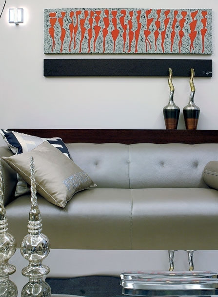هذه النفحة الزاهية البيضاء استكملت في أوّل صالون من ماركة «فندي» العالمية. هنا مقعد مستطيل طغى عليه الشكل المستدير في تصميمه من القماش اللمّاع الرمادي الفضي. وهذا اللون طغى على الطاولة في الوسط، فاتّسمت بقمةّ الإبتكار والعصرية الخارجة عن المألوف.