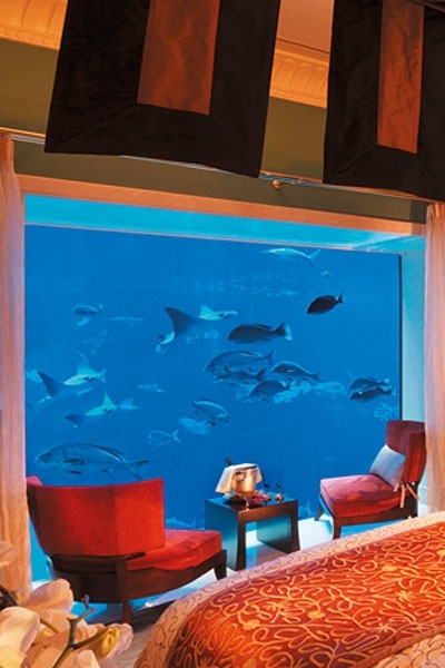 أما أجنحة الغرف المفقودة Lost chambers suites فهي المكان الذي يترجم رؤية المنتجع حيث جدار الغرفة عبارة عن اكواريوم يعج بالمخلوقات البحرية التي تختال على انقاض الاتلانتس، فيحس النازل بأنه جزء من عالم ما تحت البحار.