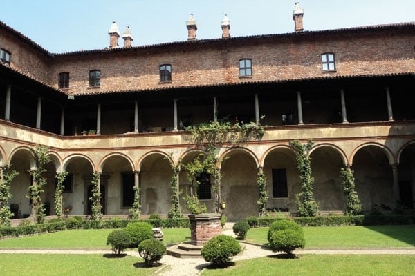 15 دقيقة. أما كنيسة «سان ساتيرو» التي عمل على تصميمها أحد أهم مهندسي تلك الفترة «برامانتي» فعند دخولها تشعر بالعمق تحت قنطرة تواجهك. ولكن ما إن تقترب حتى تلحظ أنّ التقنية التي استعملها بالحفر على الحائط، توهم بعمق غير موجود.