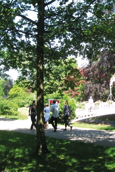 في مطعم «ريزي» قررنا الجلوس في الشرفة الخارجية المشرفة على المتنزه وأثناء تناولنا الغداء مرّت فرقة من ثلاثة عازفين لعبوا أجمل الألحان، فما كان منا ومن روّاد المطعم إلا وضع نقود في الطبق النحاسي الصغير الذي يحملونه.