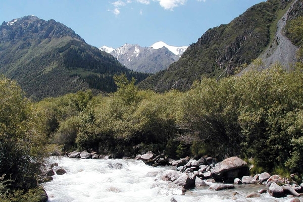 فجبالها الشاهقة المعشوشبة سفوحها، وريفها الذي يخيم عليه سكون أبدي يجعلان التجوال فيها مغامرة حقيقية. فبين بحيرة إسيك كول Issyk-kul وقناة ألا- أركا Ala- Archa وقمم تيان شان Tian shan يتجول هواة المغامرات سيرًا على الأقدام أو ركوبًا على الجياد يستمتعون برحلة غاب فيها الترف الإنساني الصناعي، ليعيشوا وسط ترف طبيعي صارخ.