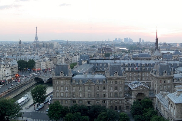 عمارات متلاصقة عريضة، تُغطيها سماء أعرض. السماء بها حمرة الغروب. والأشجار تهزّها النسائم. فترتعد أوراق الليلك. وتتماوج مياه النهر. فتبدو باريس لوحة رائعة امتزج فيها بهاء الطبيعة بحضارة الإنسان.