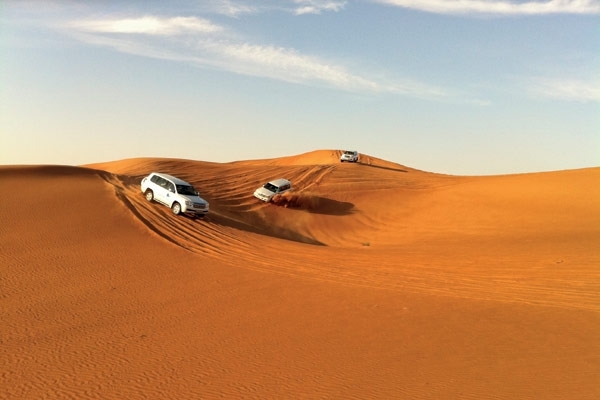 وركوب سيارة رباعية الدفع واقتحام في مغامرة السفاري وسط الصحراء الرحبة يوقظان أحاسيس جميلة عندما تتسلق السيارة الكثبان ثم تتدحرج لتقفز فجأة ثم تعاند مرتفعات الكثبان فتتسلقها من جديد لتكتشف أنها رمال متحركة تتلاعب بك وبالسيارة بهدوء.