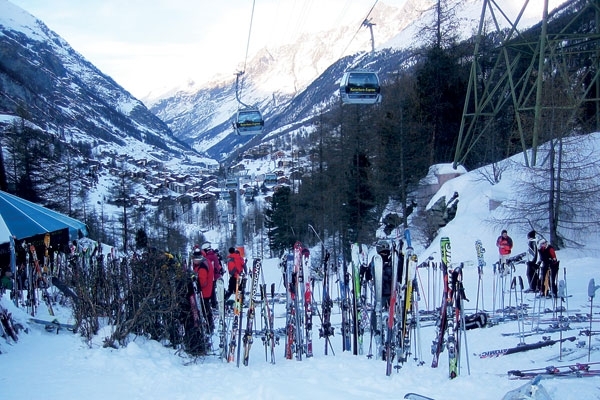 ويمكن النزول من أعلى القمة بالمصعد أو على ألواح التزلج، كما يمكن المتزلج أن يتوقف عند استراحات عدة. وتضم البلدة فنادق فخمة والكثير من النوادي الليلية التي تخترق أصداء الموسيقى مساء برد الشتاء المنتشر في أجوائها.