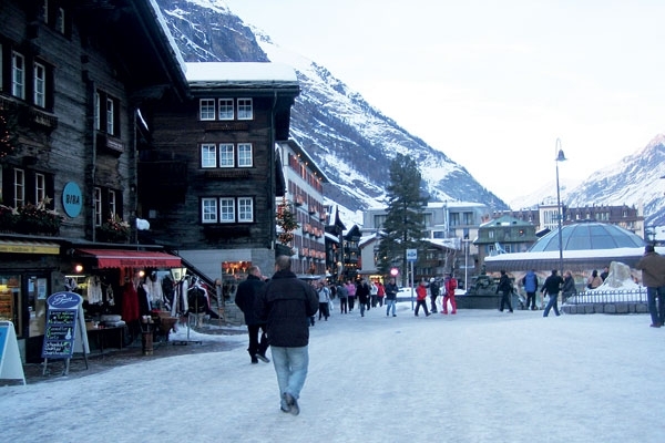 عند أقدام قمم هورن تنبسط بلدة تسيرمات بأبهة جمال القرى السويسرية.