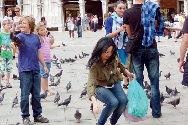 أجنحة الحمام كلها تتجمع هناك في ساحة «سان ماركو» Piazza San Marco - حيث سهولة الإنقياد - المحيطة بمقهى «فلوريان» Florian 1720. كان مكان الروائي الفرنسي مارسيل بروست المفضل.