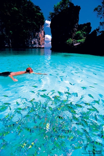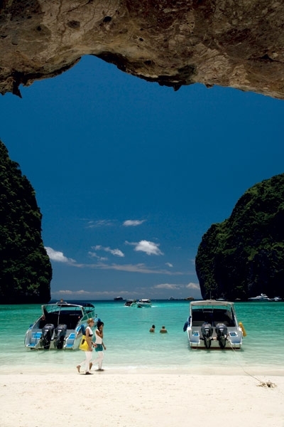 رسا المركب على شاطئ مايا الجزيرة النجمة في فيلم The beach من بطولة ليوناردو دي كابريو. كان الشاطئ قد اجتاحه السياح الذين أتوا للإستمتاع بهذا الفردوس المائي، وأنا بدوري وجدت نفسي وسط مائه الفيروزي.