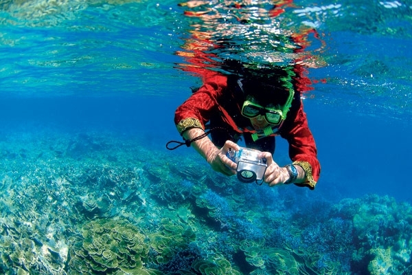 عدت إلى المركب الذي بقي بطيئًا في إبحاره ليدعونا ربانه إلى مغامرة الـ Snorkeling وضعت القناع وأنبوب التنفس، وتقمصت دور أحد غواصي كوستو.