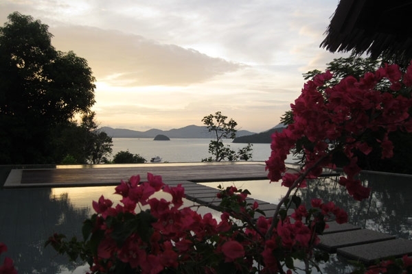 وصلنا المنتجع وكان في استقبالنا مسؤولة العلاقات العامة التي جالت بنا على غرف الفندق وأجنحته المترفة التي تدغدغ الأحلام بإجازة فريدة من نوعها وسط عالم فردوسي يستعرض جماله غير آبه برد فعلي الإنساني. دهمنا المطر ونحن على أحد تراسات المنتجع المشرفة على البحر فالسحب الكثيفة الرمادية تكتلت بشكل مهيب ولاحت لي الجزر المتناثرة في البحر مردة تتحدى المطر.