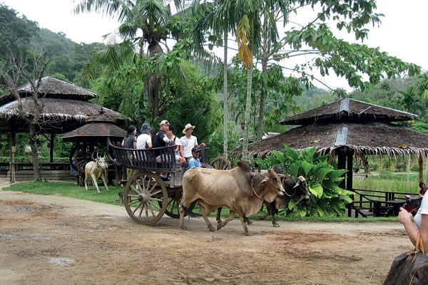 تعكس الأكواخ المتناثرة في مقدمة المحمية الغابة النمط التايلاندي، والسفاري هنا لا يقتصر على الفيلة بل عربات الثيران أيضًا تنتظر المغامرين.